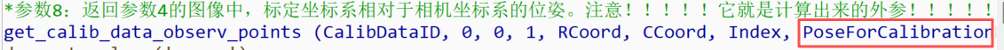 *参数8:返回参数4的图像中,标定坐标系相对于相机坐标系的位姿。注意!!!!!它就是计算出来的外参!!!!!!!!
