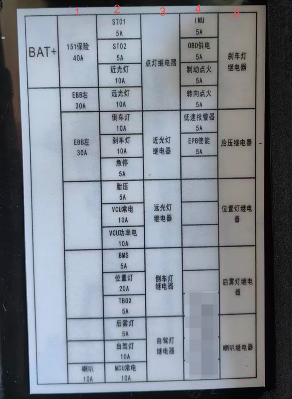 图中的1、2、3、4、5列其实并没有一一对应的关系。例如"刹车灯继电器"当然不会控制"OBD供电"、"制动/转向点火"等子系统的开关,二者没有逻辑关系。