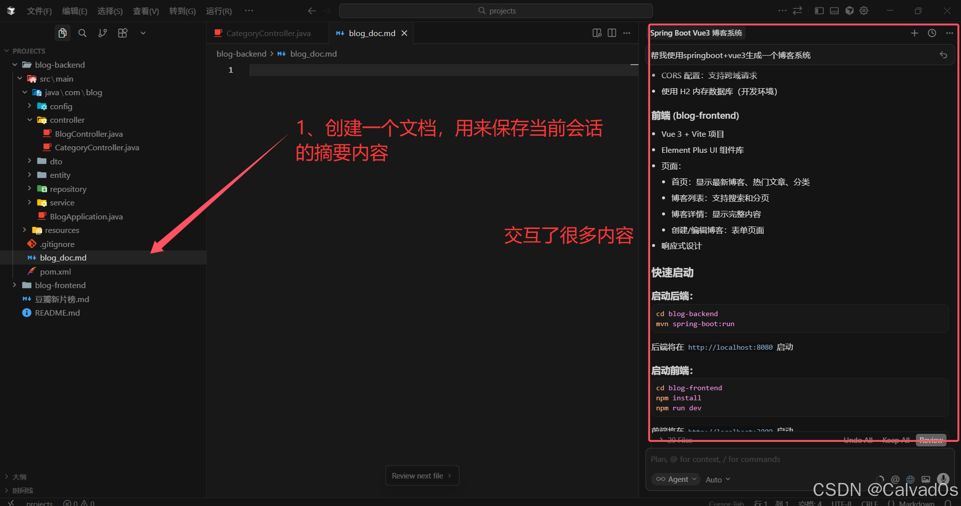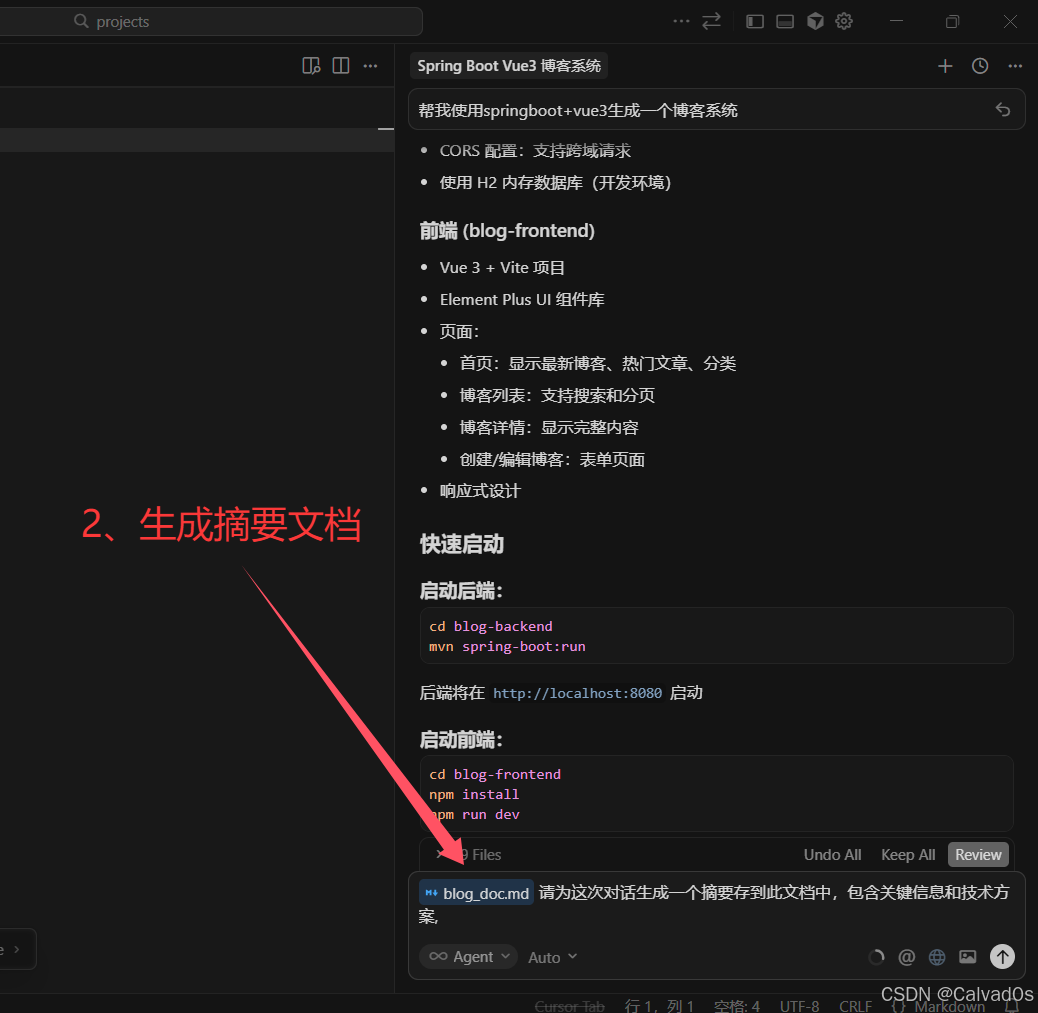 生成摘要文档:让AI编辑器生成当前会话的摘要,形成文档存储