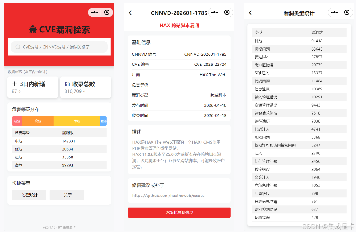 转岗到网络安全后,我发现手机上没有专门用于漏洞信息查询的工具,至少在微信小程序这块没有。于是迸发了做一个的念头,也方便自己日常使用。