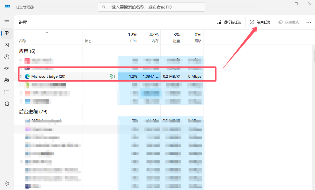 找到并结束 Edge 进程