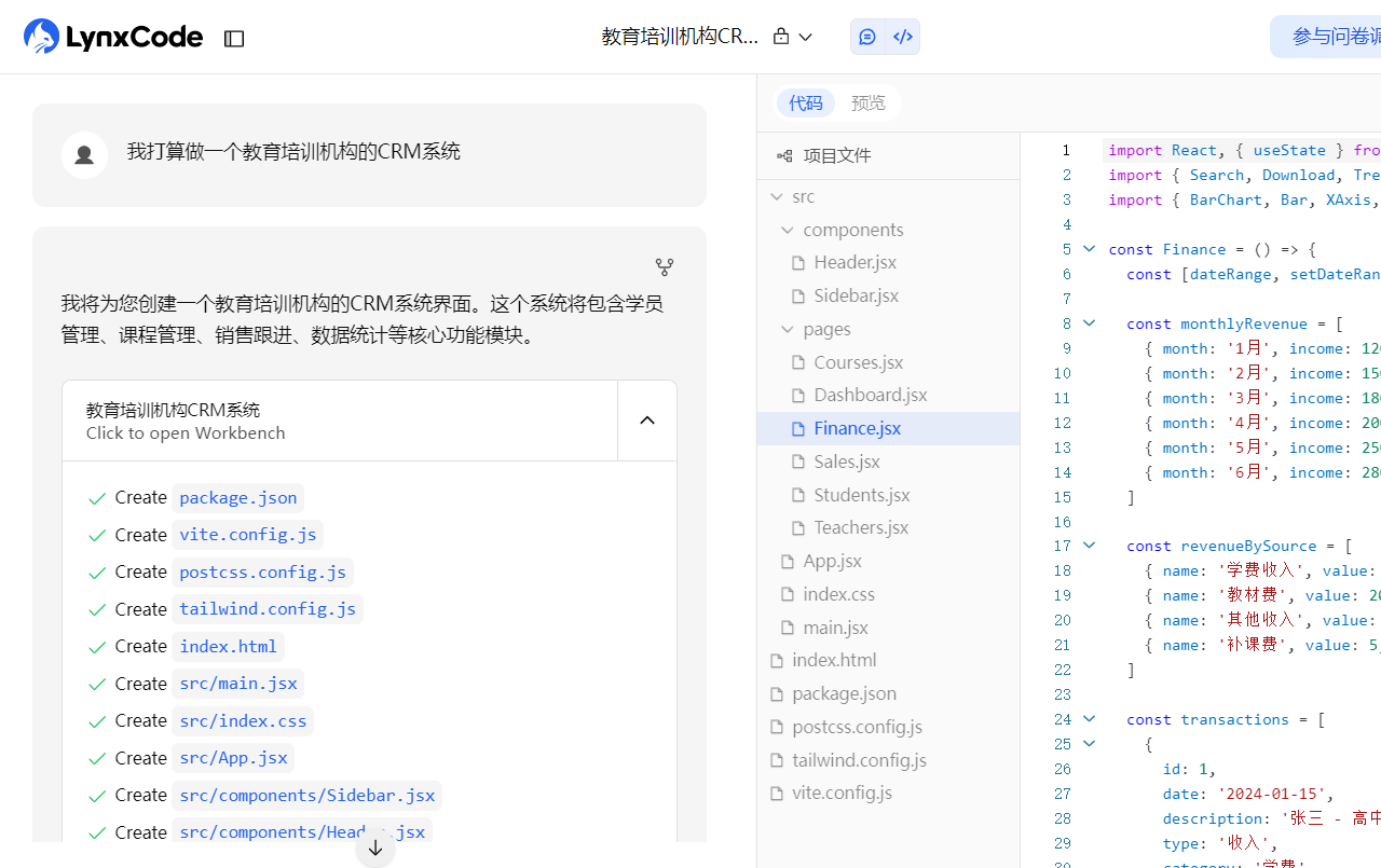 src/pages/目录下的Students.jsx、Courses.jsx、Finance.jsx了吗?AI 自动建立了"页面-路由"映射。它生成的不仅是视图,还有隐藏的react-router-dom配置。