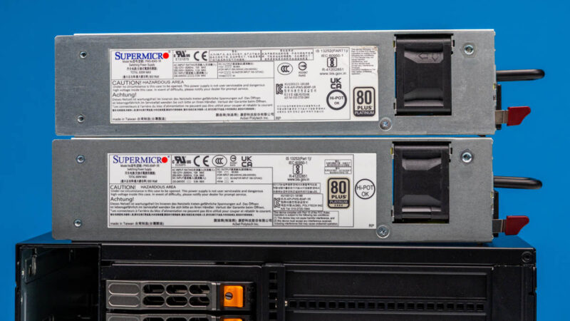 SYS-E403-14B-FRN2T 标配双 800W 80PLUS 白金认证冗余电源,同时也支持单电源配置。