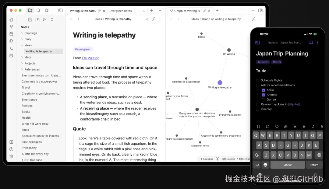 相信关注逛逛的读者,很多人都在用 Obsidian,它是一个基于本地 Markdown 文件的知识管理与笔记软件。