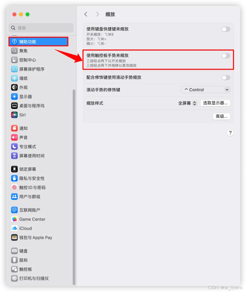 注意事项:若您开启了系统的三指轻点缩放功能,会对三指轻拍调出超级右键菜单产生影响,请您关闭系统的三指轻点缩放功能。