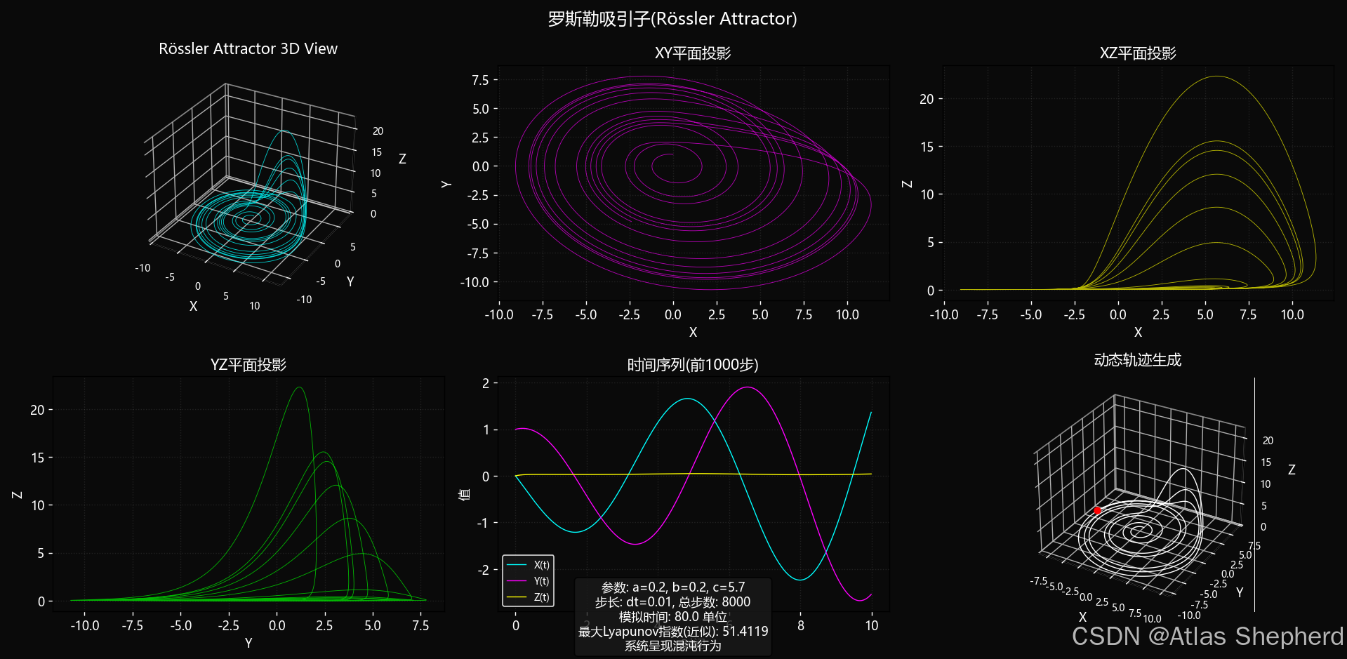 print(f" Z范围: [{rossler.z.min():.2f}, {rossler.z.max():.2f}]")