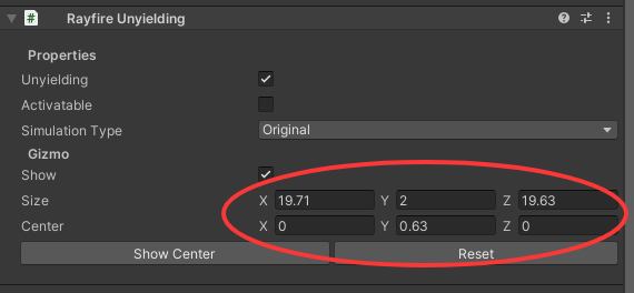 挂上脚本Rayfire Unyielding,设置好size,如图6,图7