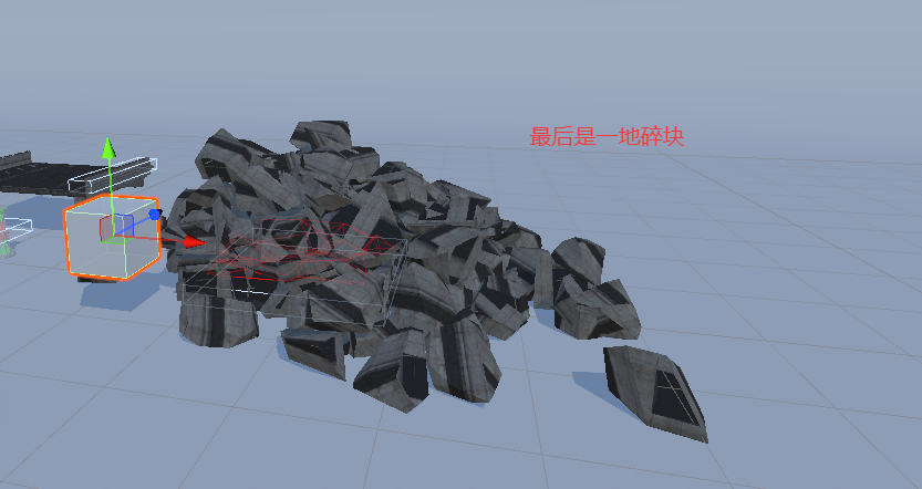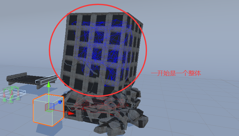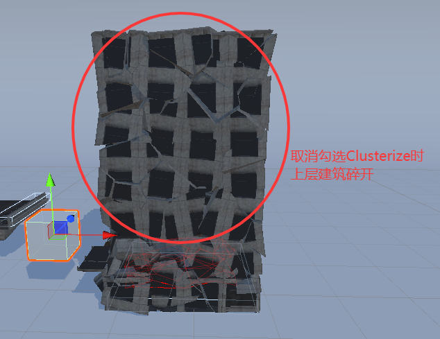 因为之前用了Connectivity,已经视为一个整体了,所以倒塌时,只有地基会产生碎块,上面是一整个建筑倒下来,并不会有碎块