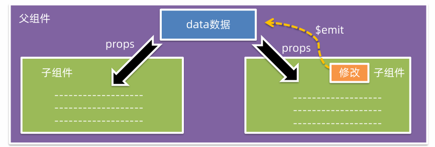 父组件通过props将数据传递给子组件,子组件利用$emit通知父组件,进行修改更新。