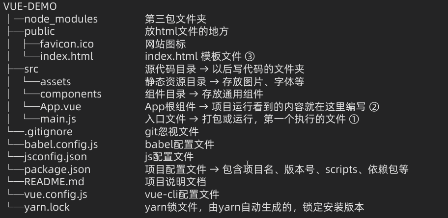 - 创建项目架子:vue create project-name(项目名-不能用中文)