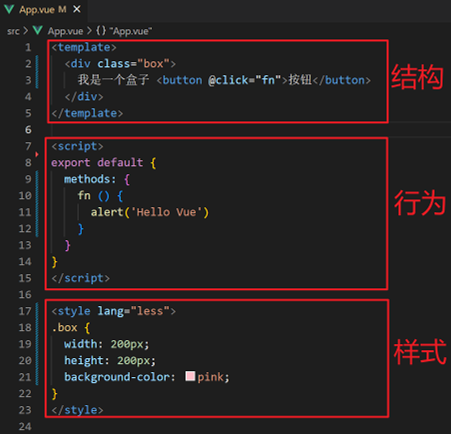 - 创建.vue 文件(三个组成部分)