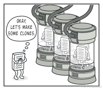 它是这样运作的:你创建一组对象,配置方式各异。当你需要像你配置的那样的对象时,只需克隆一个原型,而不是从零开始构建新对象。