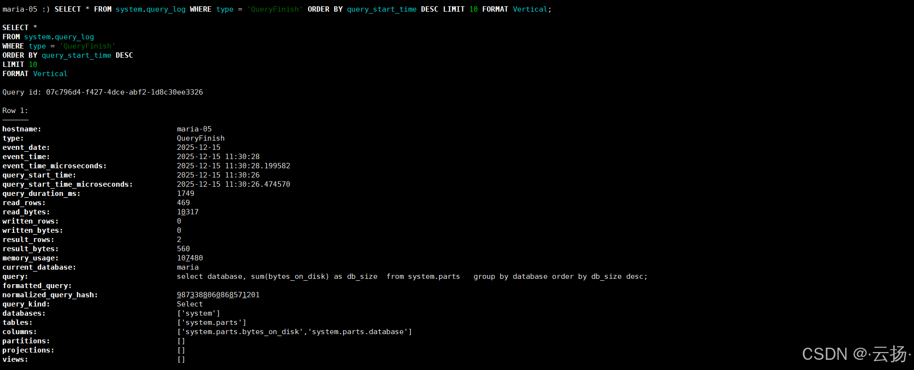 SELECT * FROM system.query_log