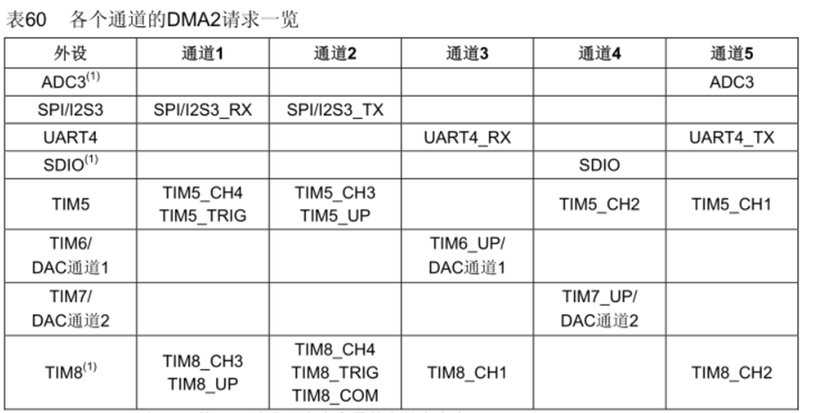 DMA2请求映射:ADC3/SDIO/TIM8的DMA请求只有大容量的单片机才有