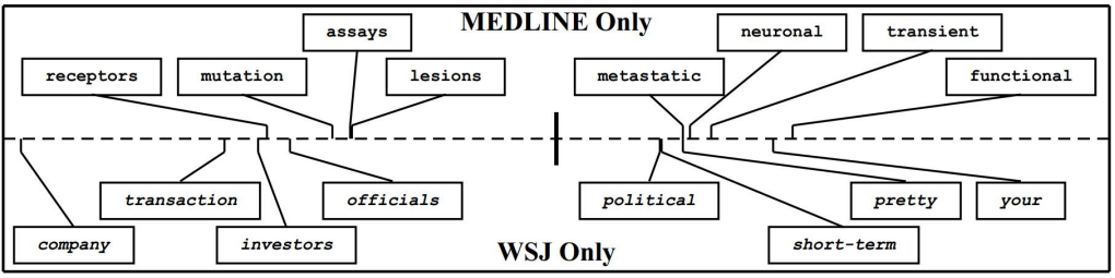 上图形象地展示了 Pivot feature 的含义。Pivot feature指的是在文本分类中,在不同领域中出现频次较高的那些词。