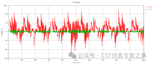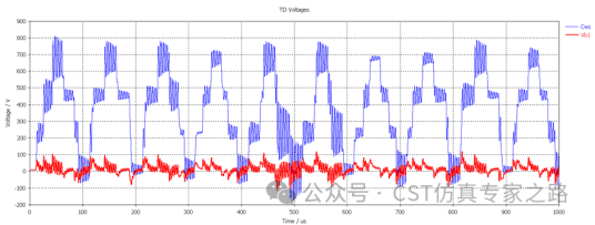 轴承在稳态工作下,共模电压CMV是由Cws、Cwr、Csr、Cb共同作用产生的,轴电压Vb的大小等于Cws的电压减去Csr的电压,这就是轴电压产生的根本原因。下图是仿真出来的Cws和Vb电压波形。