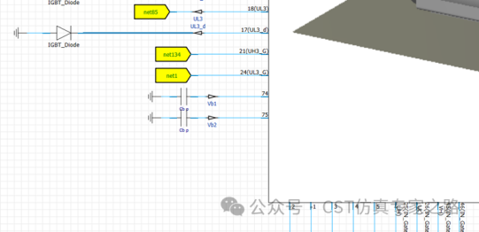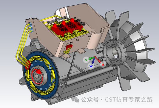 将已经创建好的电机、MCU控制器、轴承等模型组装到一起,就构成了完整的轴电压仿真模型,这个模型和电驱系统EMC仿真非常类似。