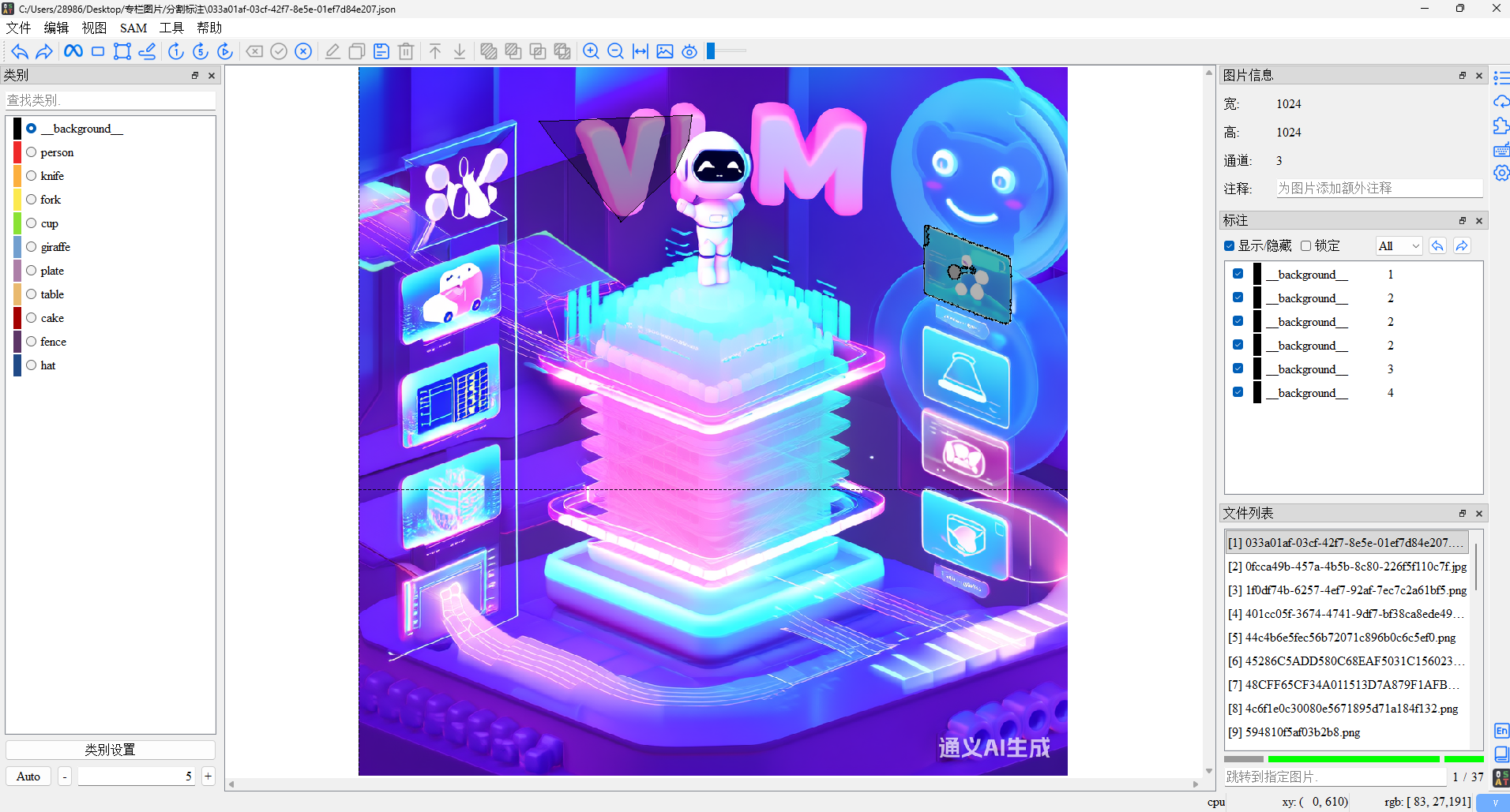 ISAT(Intelligent Segmentation Annotation Tool) 是由 北京理工大学 & IDEA 实验室 联合开发的一款开源、智能化、高效率的图像分割标注工具 ,专为语义分割、实例分割和全景分割任务设计。