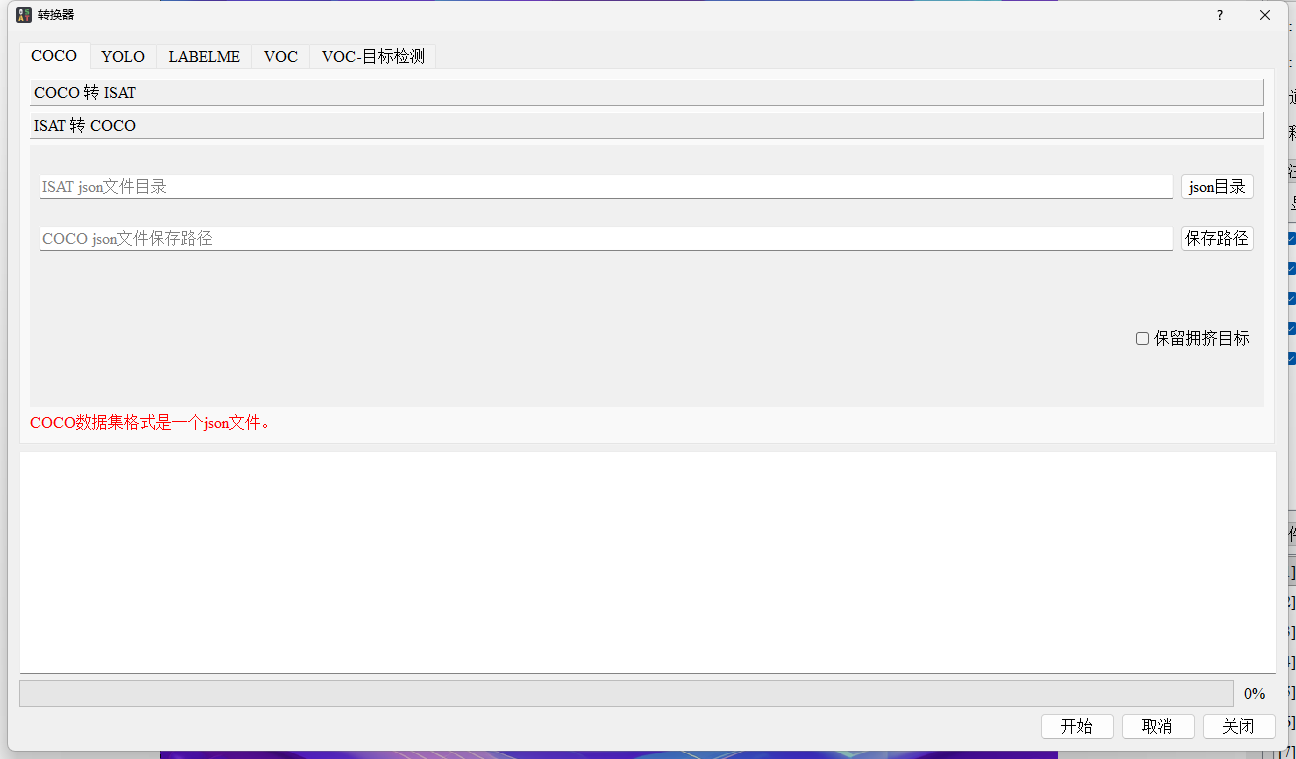 例如:下面选择.json文件路径,和选择转为VOC格式后要保存的路径,如下: