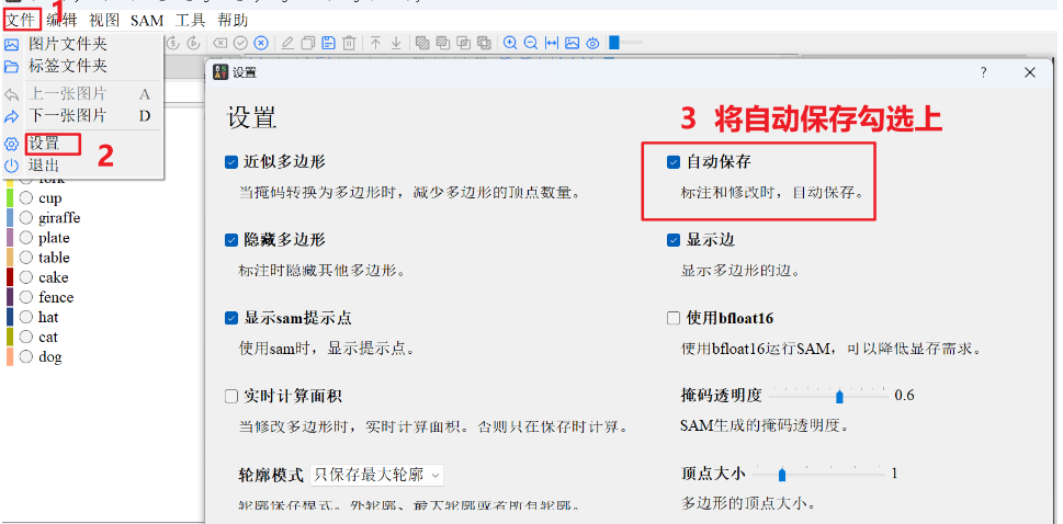 建议开启自动保存,避免打标签过程出现意外中断无法保存,开启方法如下: