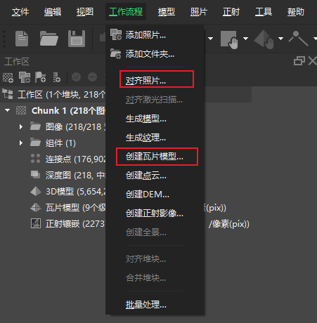 在Metashape中,先导入数据,再对齐照片,之后就可以创建瓦片模型。