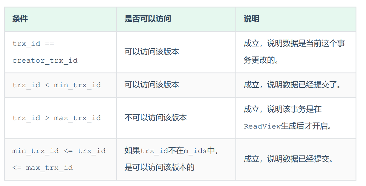 1.RC隔离级别:每次select都生成一个快照读,每一次执行快照读时生成ReadView,会遍历版本链,根据访问规则读取数据