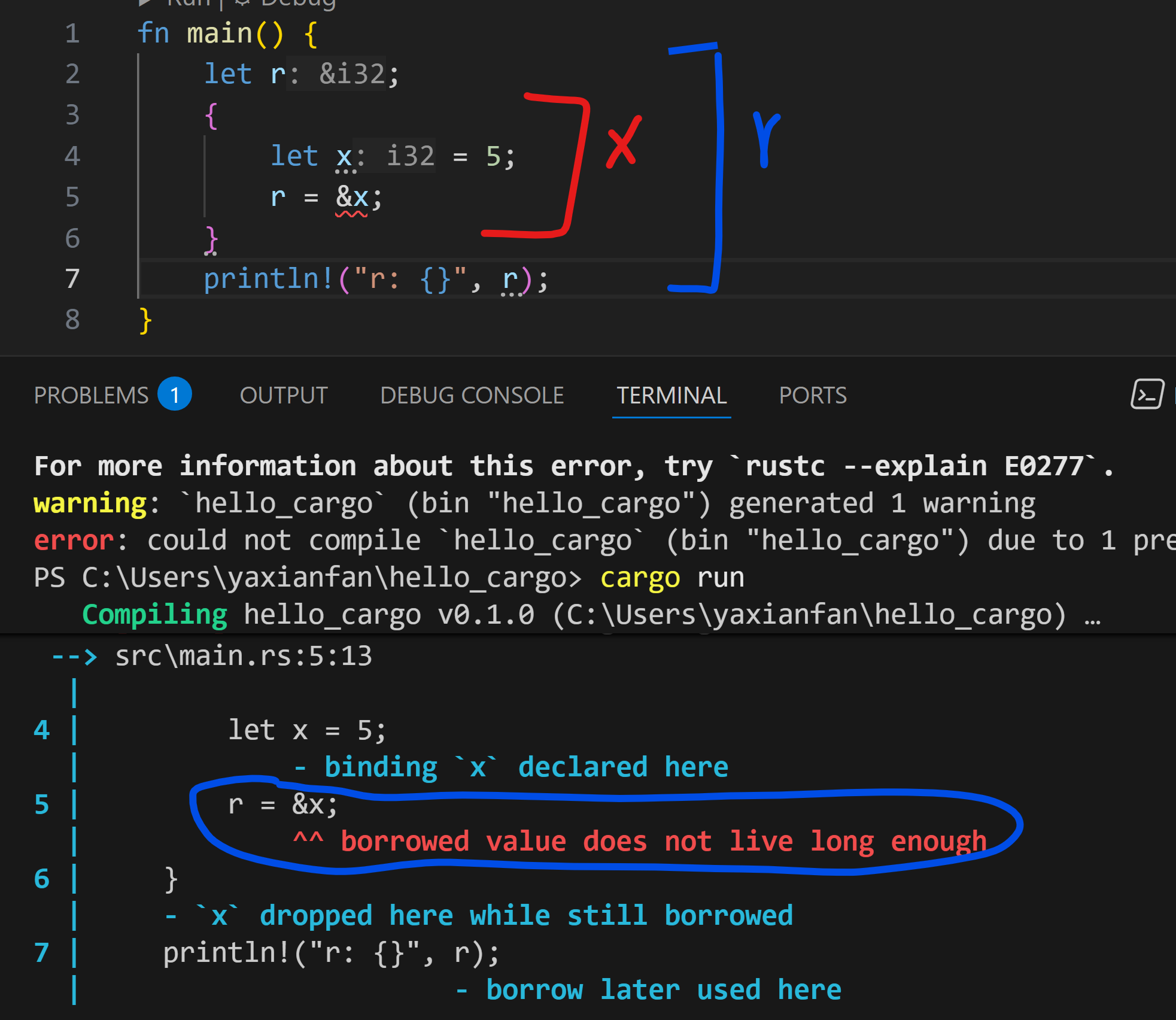 rustfn longest(x: &str, y: &str) -> String { let res = String::from("aaa"); res } - 会导致悬垂引用