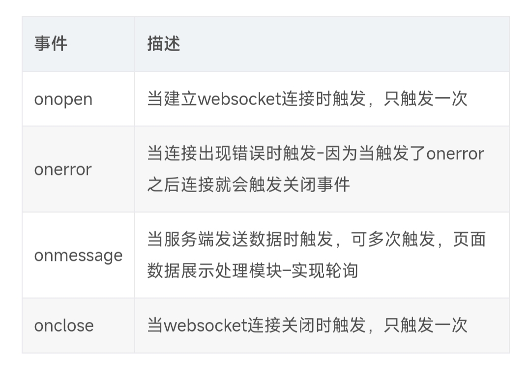 3,WebSocket API是纯事件驱动,建立连接之后,可自动发送状态改变的数据和通知