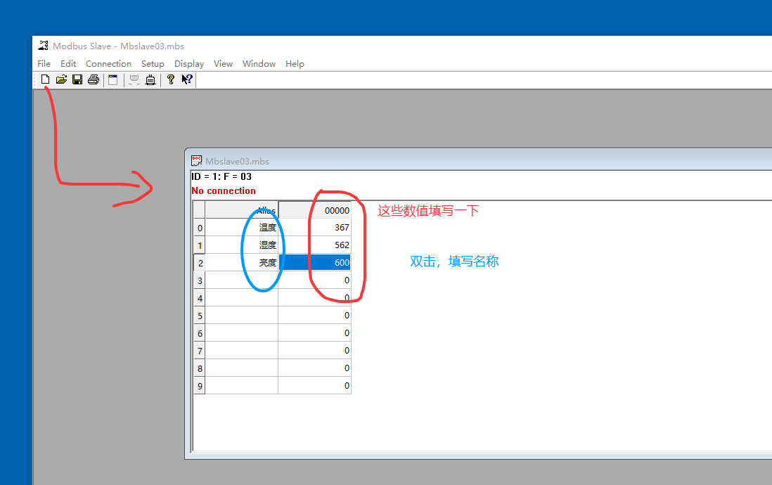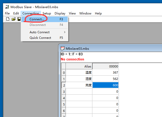 Modbus Slave:用于测试和调试的模拟工具。也就是说,这个软件是用来模拟上面那些湿度,温度,灯泡硬件设备的,因为当前没有真实的硬家伙,可以使用软件来模拟设备,效果是一样的,效果相当的奈撕,耐死。