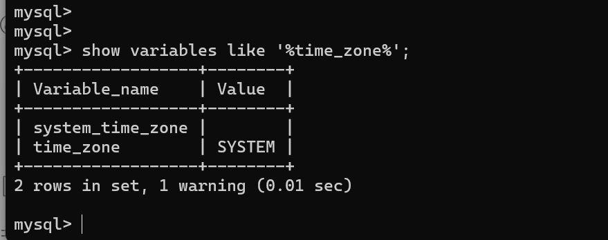 SYSTEM(表示跟随操作系统时区);系统默认时区是UTC+8 北京 - 若查询结果中