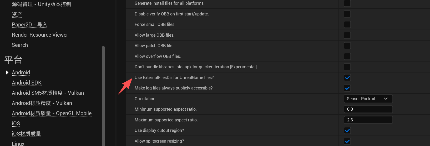 所以要么打发布包,要么勾选Use ExternalFilesDir for UnrealGame files?,要么注释了那句代码。