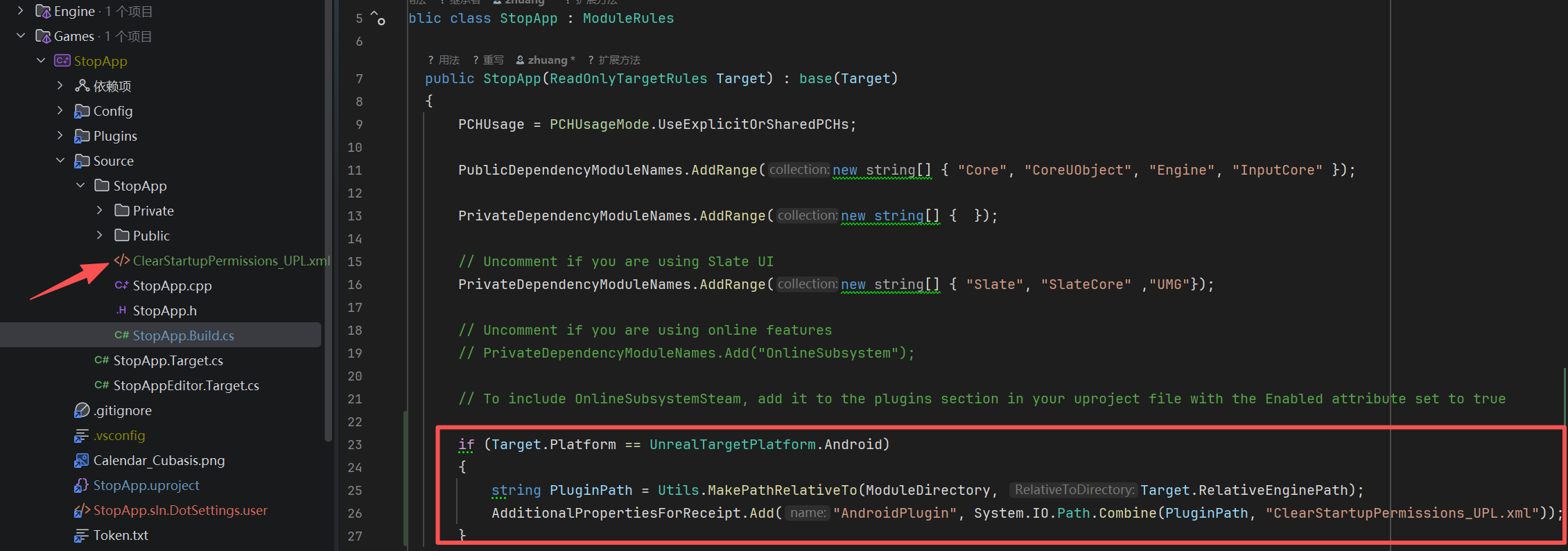 2--在build.cs同级文件夹下创建ClearStartupPermissions_UPL.xml文件,这个名字对应代码中的名字。