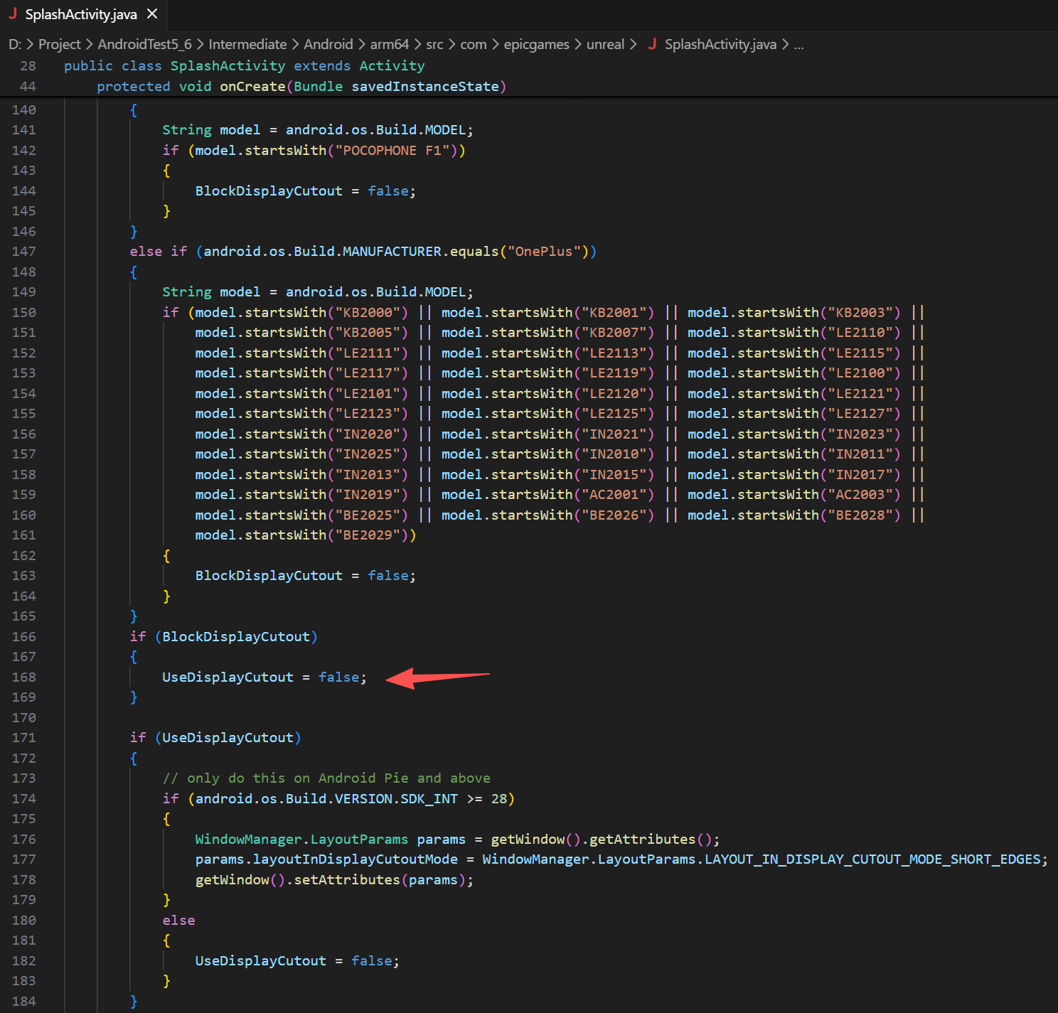 核心问题是UE生成的java代码中有关于机型的判断,大部分文章都说要注释了