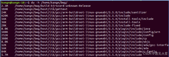 du(disk usage)命令用于查看指定目录或文件的磁盘使用情况。它主要显示每个目录或文件占用的磁盘空间。