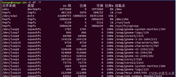 - -T 或 --print-type:显示文件系统类型(如 ext4、xfs 等)。
