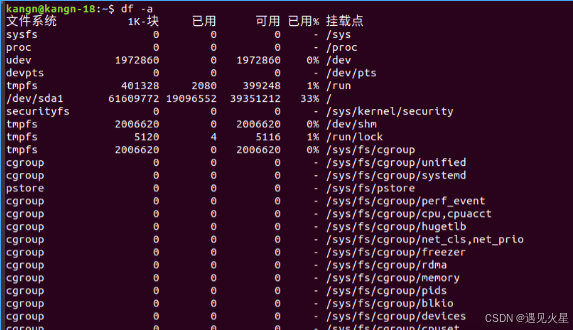 - -a 或 --all:显示所有文件系统,包括 0 字节的文件系统。