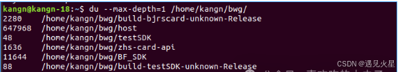 - -d:指定显示目录的深度。例如,-d 1 仅显示当前目录和其直接子目录的磁盘使用情况