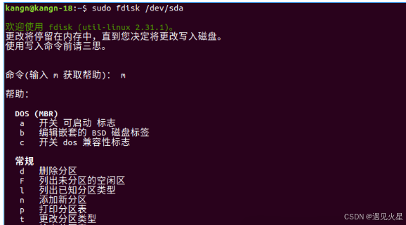 常见的 fdisk 交互命令
