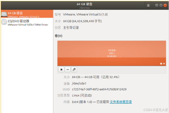 当然了,还有图形界面的磁盘工具,在GNOME中有一个叫Disks(磁盘)的软件,嫌弃命令麻烦的可以用它,下图: