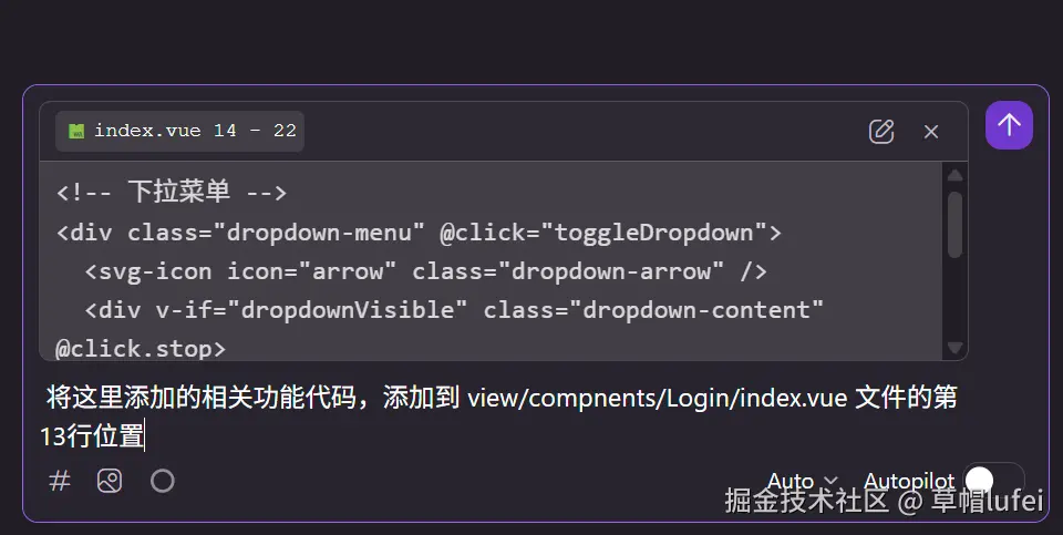 我找了对应文件和位置后,接续提示它,把选中的代码相关功能,加到对应的位置