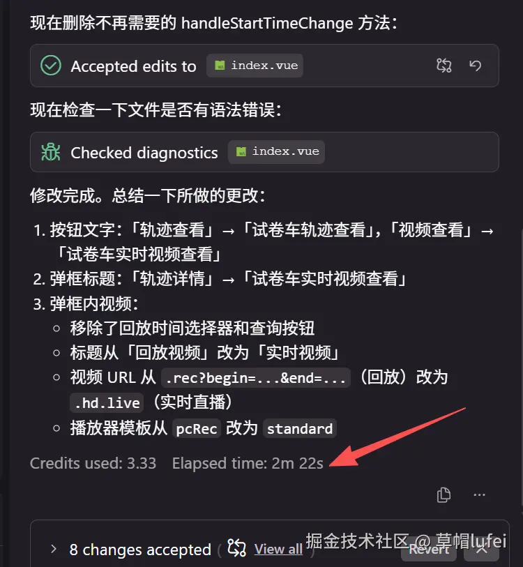 让它把原来添加的功能效果稍微优化一下,速度提升到了30多秒,这个速度相对自动模式快了一点,但是没有特别大的提升,可能是因为这个需求比较简单,所以没有特别大的优化空间