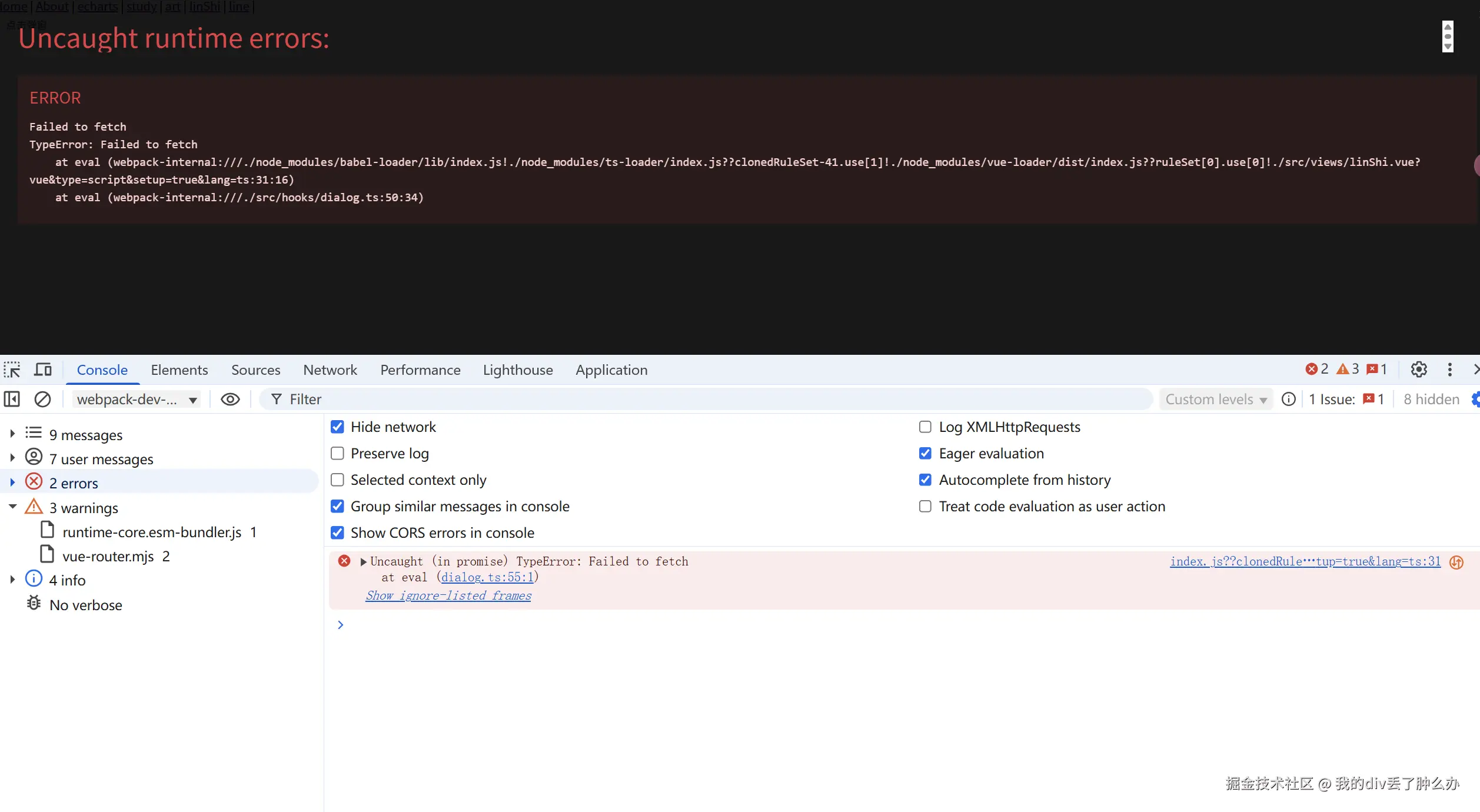* 那么浏览器控制台就会显示一个 "Uncaught (in promise)" 错误。