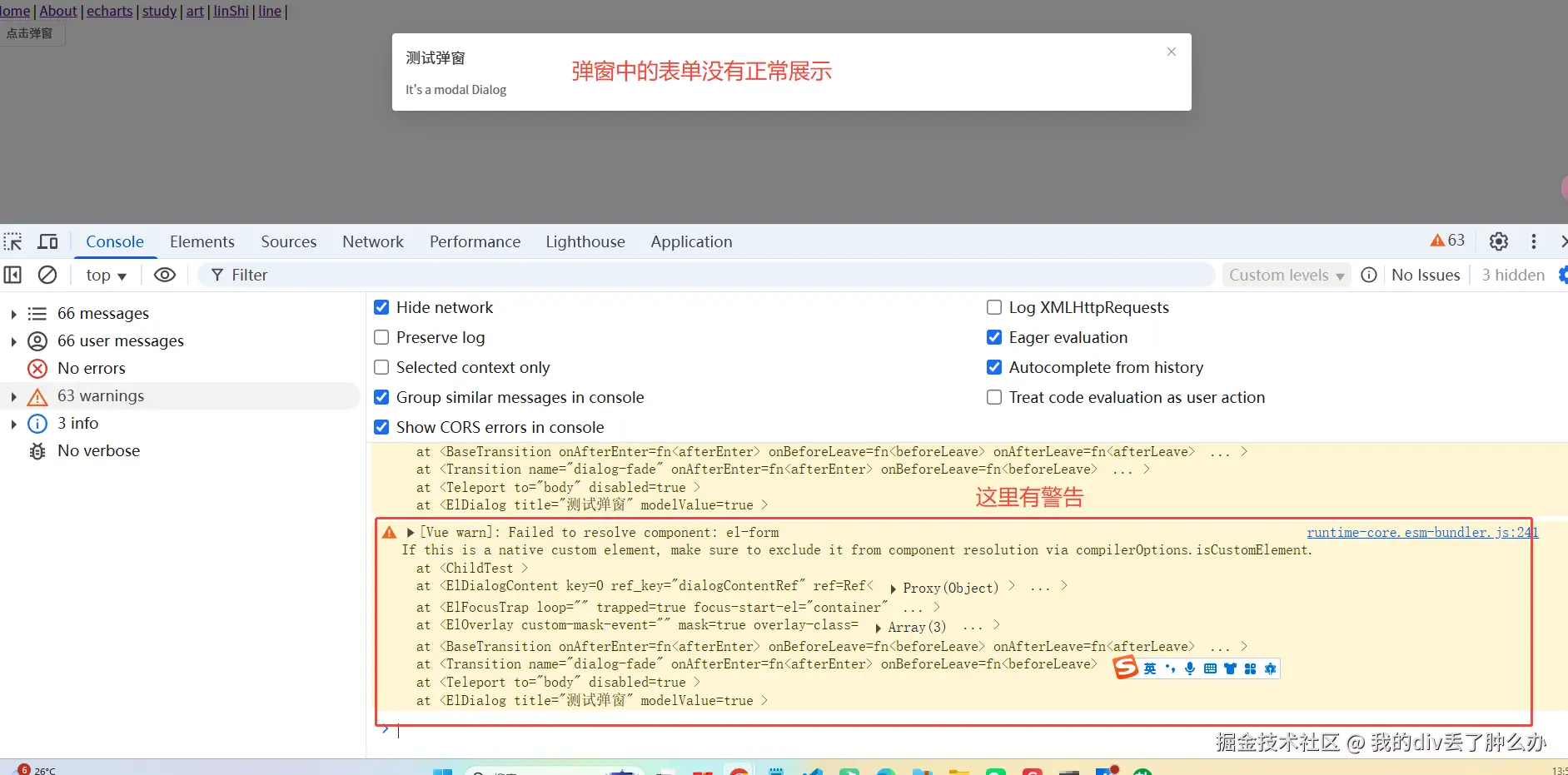 无法解析组件:el-form如果这是一个原生自定义元素,