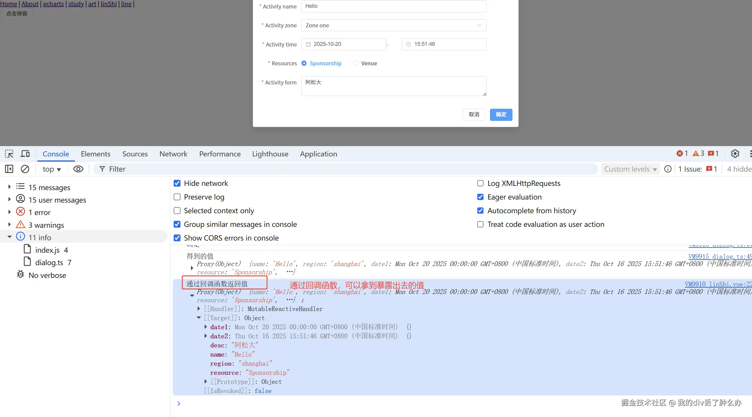 如何把表单中的数据暴露出去