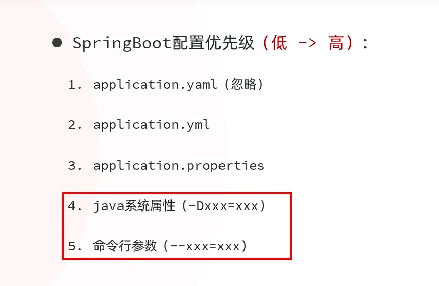 Spring Boot 为 application.properties / application.yml 提供了默认的外部加载机制,查找路径及优先级如下(优先级从高到低):