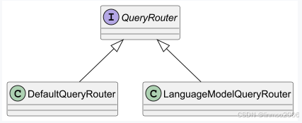 QueryRouter负责将查询信息分发给相应的ContentRetriever 。之所以要实现一个查询路由,是由于在现实中,可能并非一个检索数据库就能解决问题,后台可能还存在关系型数据库等其它信息,因此需要对query进行判断,决定使用什么检索或者多个检索结合的方式。这时候就需要一个语义路由。可以参考我之前写的RAG系列中《检索增强生成RAG系列5--RAG提升之路由(routing)》,既可以简单的判断,也可以融入大模型进行路由。在Langchain4j 中,QueryRouter的默认实现类如下: