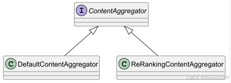- DefaultContentAggregator :基于Reciprocal Rank Fusion重排名机制。具体参考我之前写的《检索增强生成RAG系列7--RAG提升之高级阶段》中1.1 RRF算法实现。