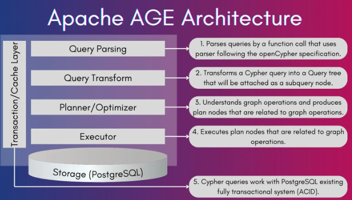 - 在执行 Cypher 查询的同时,完整继承 PostgreSQL 的 ACID 事务特性,确保数据一致性与可靠性。