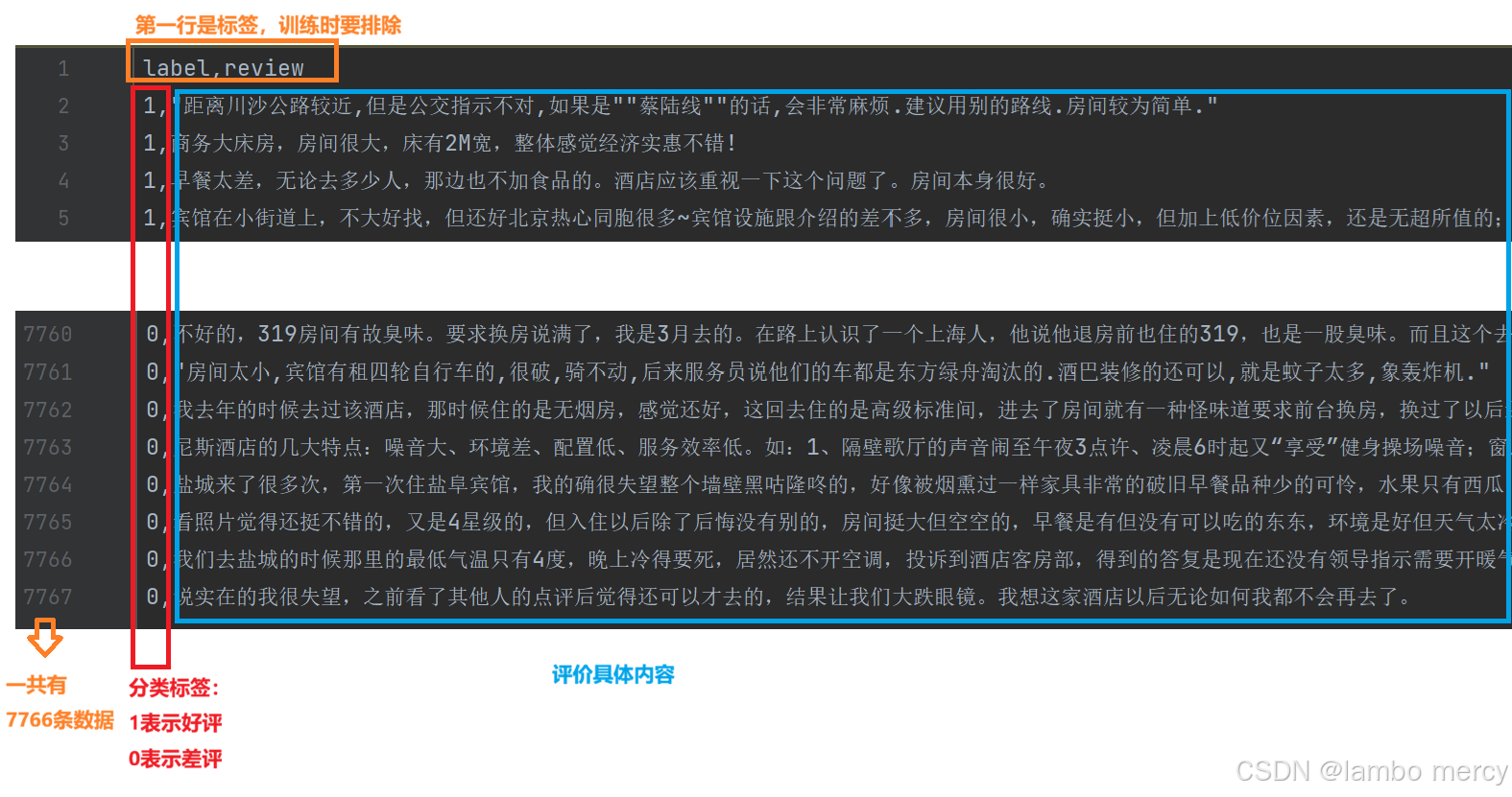 if i > 200 and i < 7500: # 取前面200行好评,和后200行差评