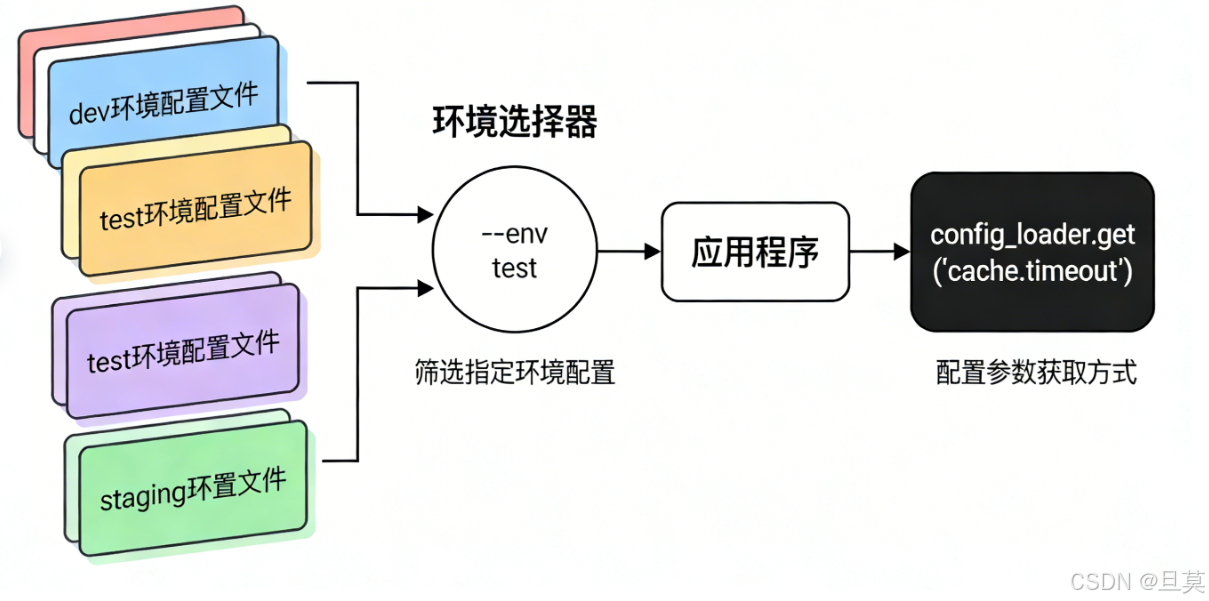 这个工具的核心原理其实很简单:将不同环境的变量统一存储在配置文件中,通过指定环境类型,让工具自动读取对应环境的配置,加载到程序中供后续使用。